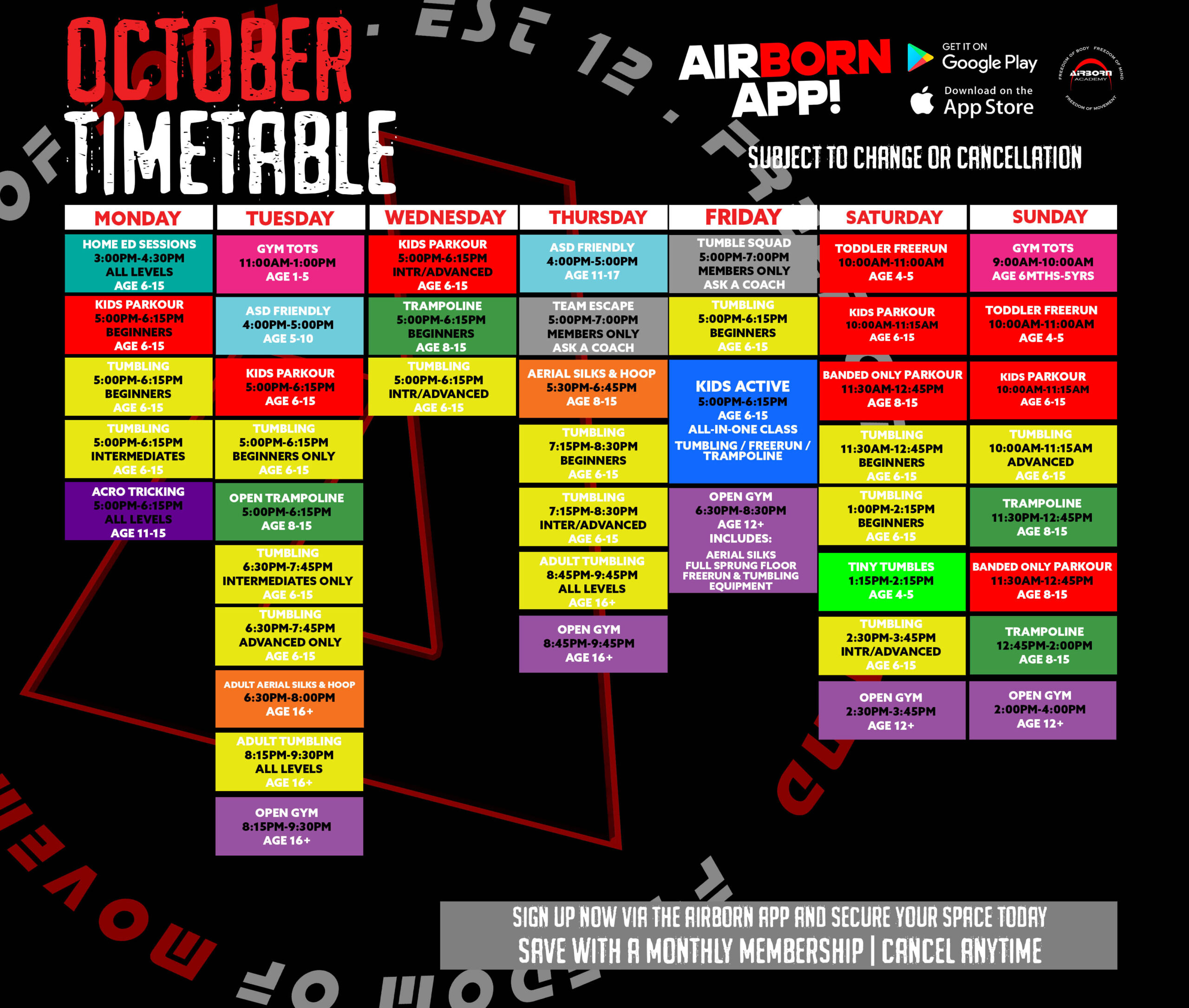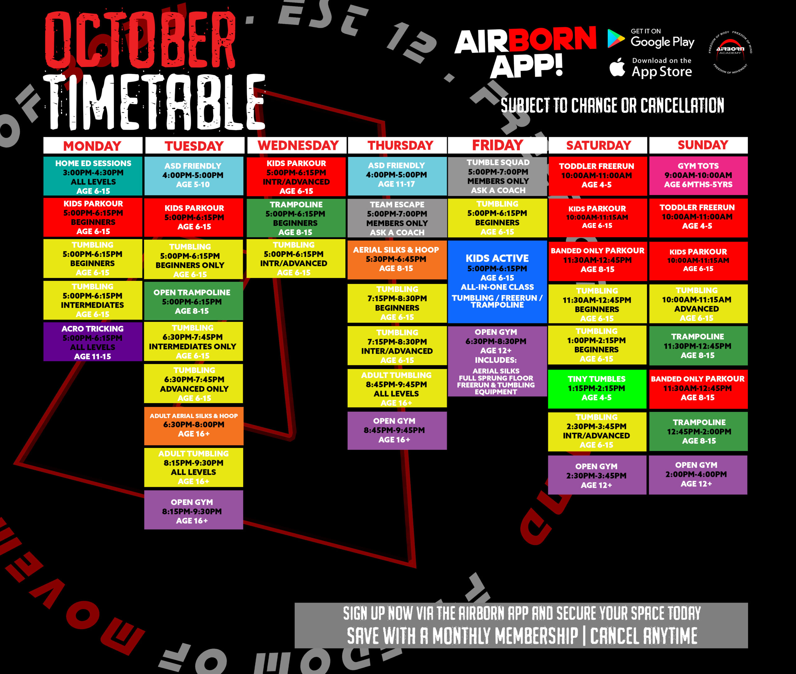 CLASSES SUBJECT TO CANCELLATION AT ANYTIME, ALWAYS CHECK THE AIRBORN APP.